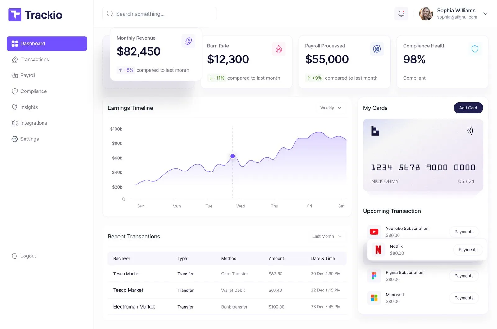 We were using three different tools to manage finances, payroll, and reporting—and still getting it wrong. Trackio brought everything into one place. Now, I can open a dashboard and see exactly where we stand—spending, cash flow, and even compliance alerts. We saved time, cut costs, and stopped second-guessing our data. It’s not just a tool, it’s a competitive advantage.